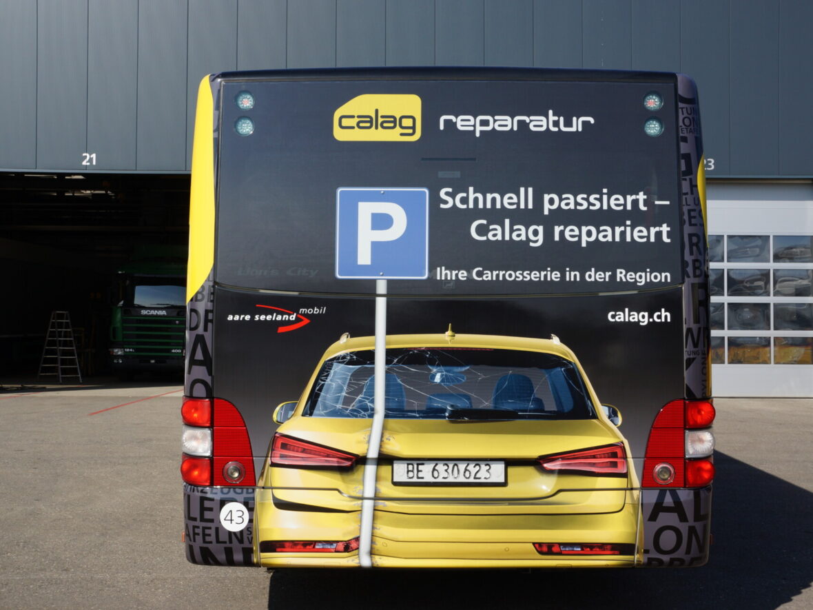 Auf dem Heck prangt ein gelber PW mit einem Parkschaden und dem Slogan „Schnell passiert – Calag repariert“. So mancher Autofahrer wird sich diese Dienstleistung bestimmt merken. „Für die Reparatur von grossen Schäden an Nutzfahrzeugen sind wir national bekannt. Dass man uns auch sein Auto bringen kann, wissen hier herum nur Wenige“, sagt Kurt Späti, Calag Geschäftsleiter.