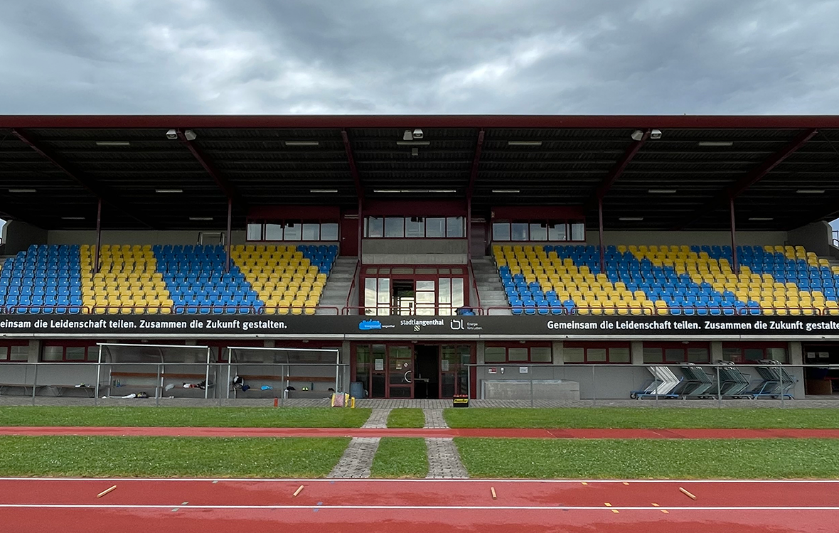 Für die Leichtathletik CH Meisterschaften 2021 will man sich als Gastgeber im besten Licht zeigen. Die Stadt Langenthal und die Industriellen Betriebe Langenthal nutzten diese Gelegenheit gleich um am altehrwürdigen Stadion Hard die Beschriftung zu aktualisieren und sich als Sponsor des Events entsprechend zu präsentieren. Durch die geschickte Platzierung an der Brüstung der Tribüne wird das Logo und der Leitspruch der Stadt und der IB Langenthal sicherlich auf vielen Bildern und Berichterstattungen über den Event zu sehen sein.
