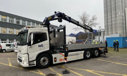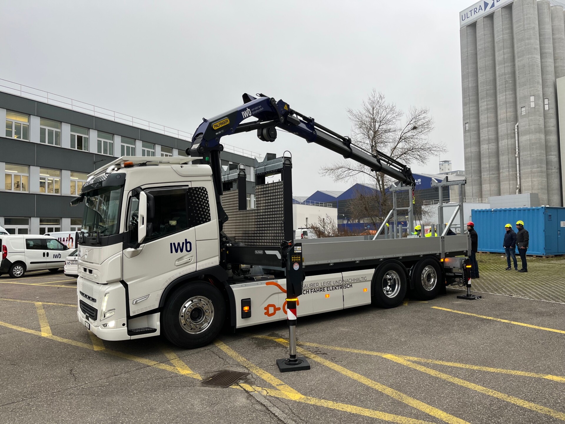Die IWB, Industrielle Werke Basel, setzen bei ihrer Fahrzeugflotte in allen Bereichen strikt auf Fahrzeuge mit alternativen Antrieben, um die Transformation von fossiler zu erneuerbarer Energie und Mobilität voran zu treiben. So auch bei der neusten Ergänzung im Fuhrpark, einem Volvo Electric, welcher durch die Calag einen Palfinger Ladekran und eine passende Ladebrücke aufgebaut erhielt.
