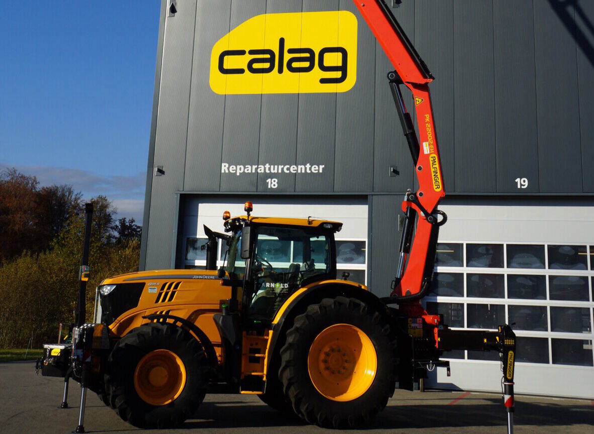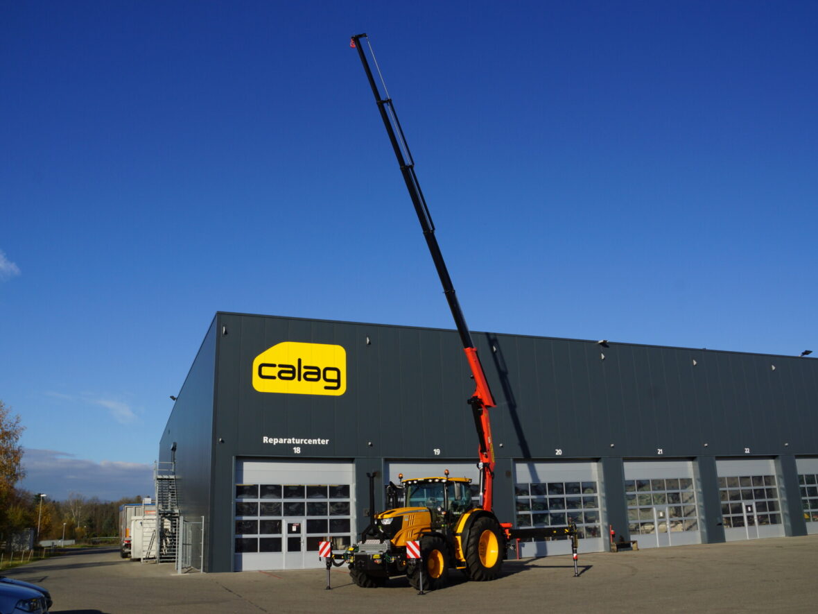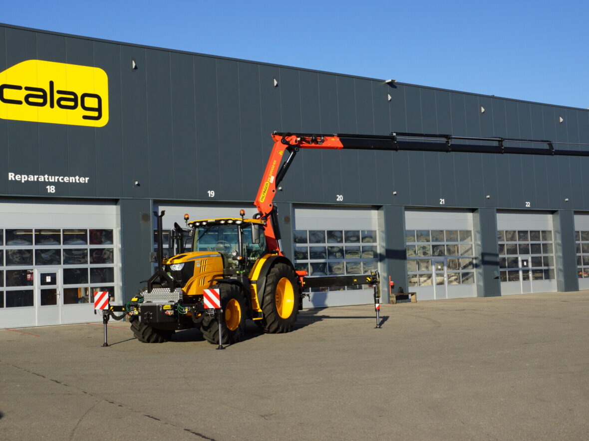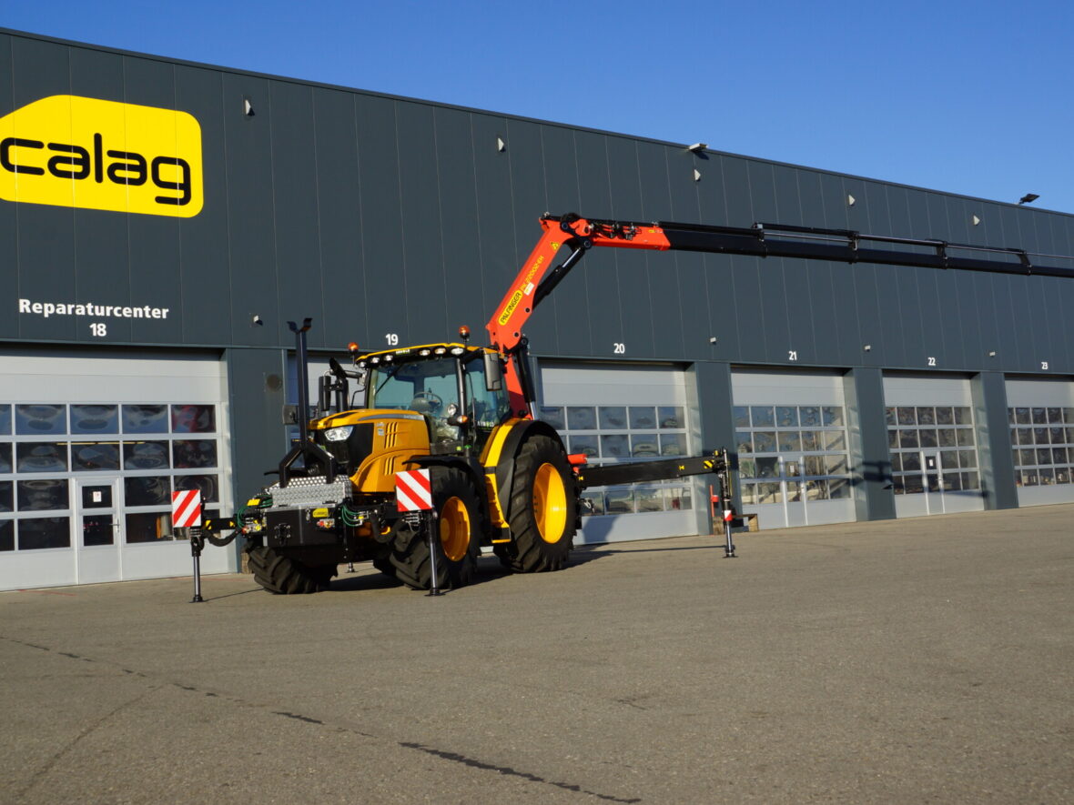 Nicht alltäglich, ein Lastwagenkran auf einen Traktor aufzubauen. Auf Kundenwunsch realisierte die Calag den Spezialaufbau eines Traktors mit 2-facher Abstützung und Stückgutkranaufbau Palfinger PK 220002 EH D