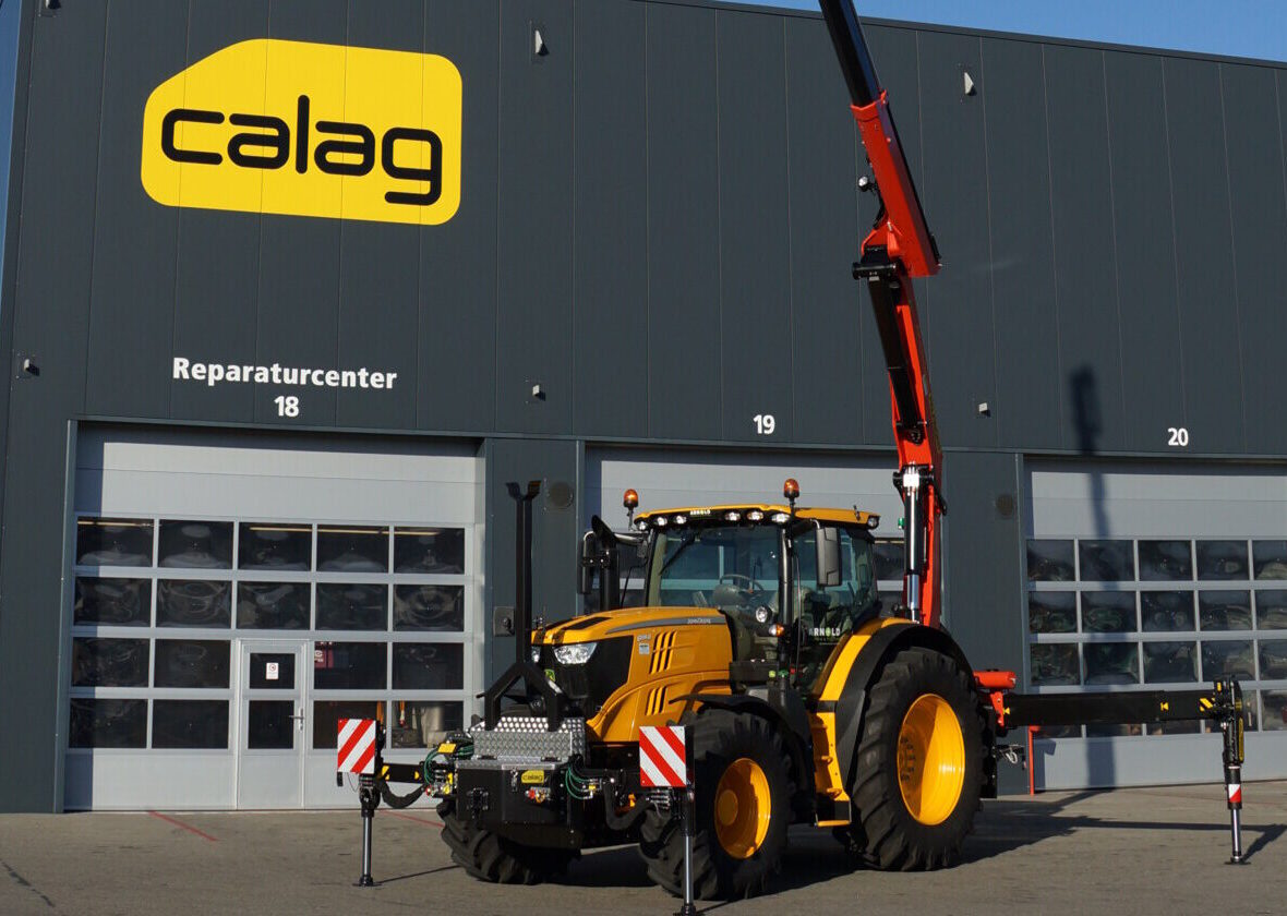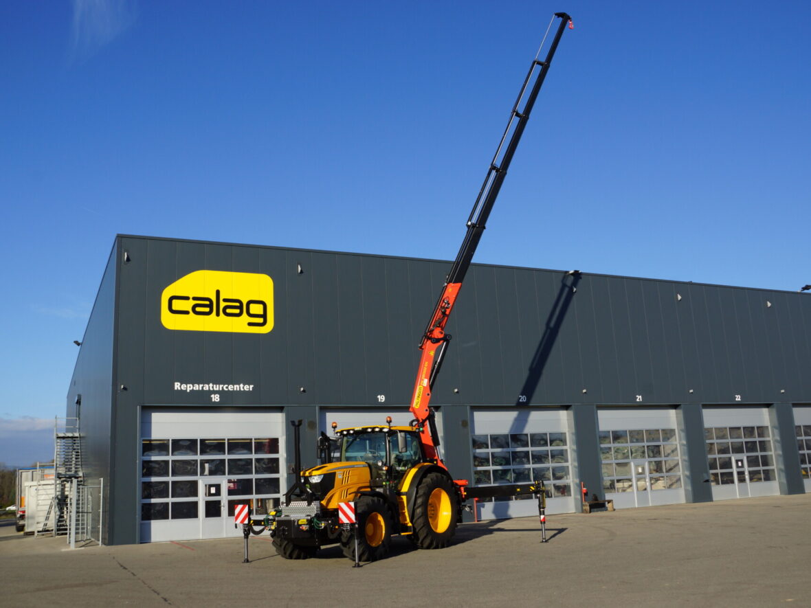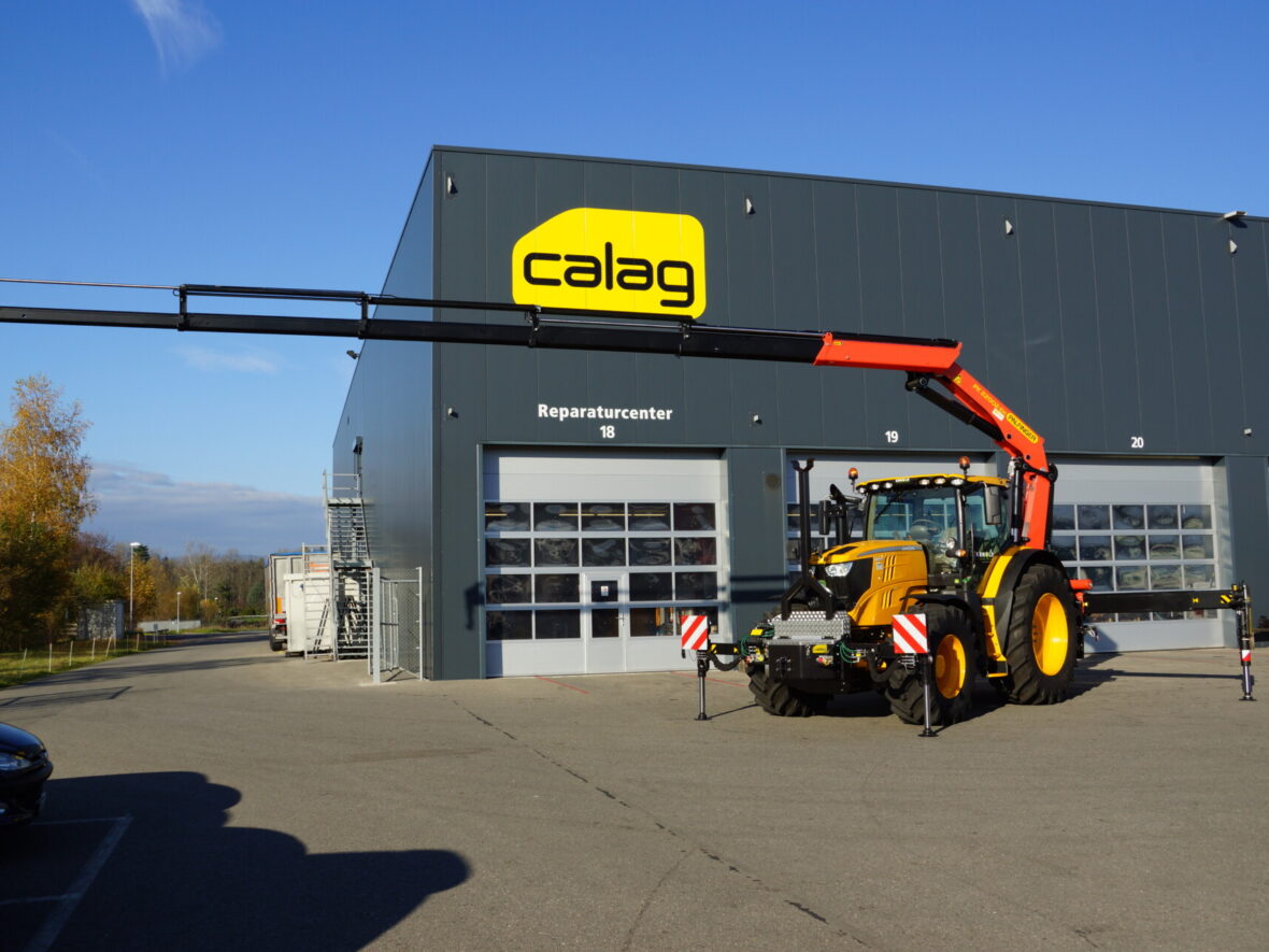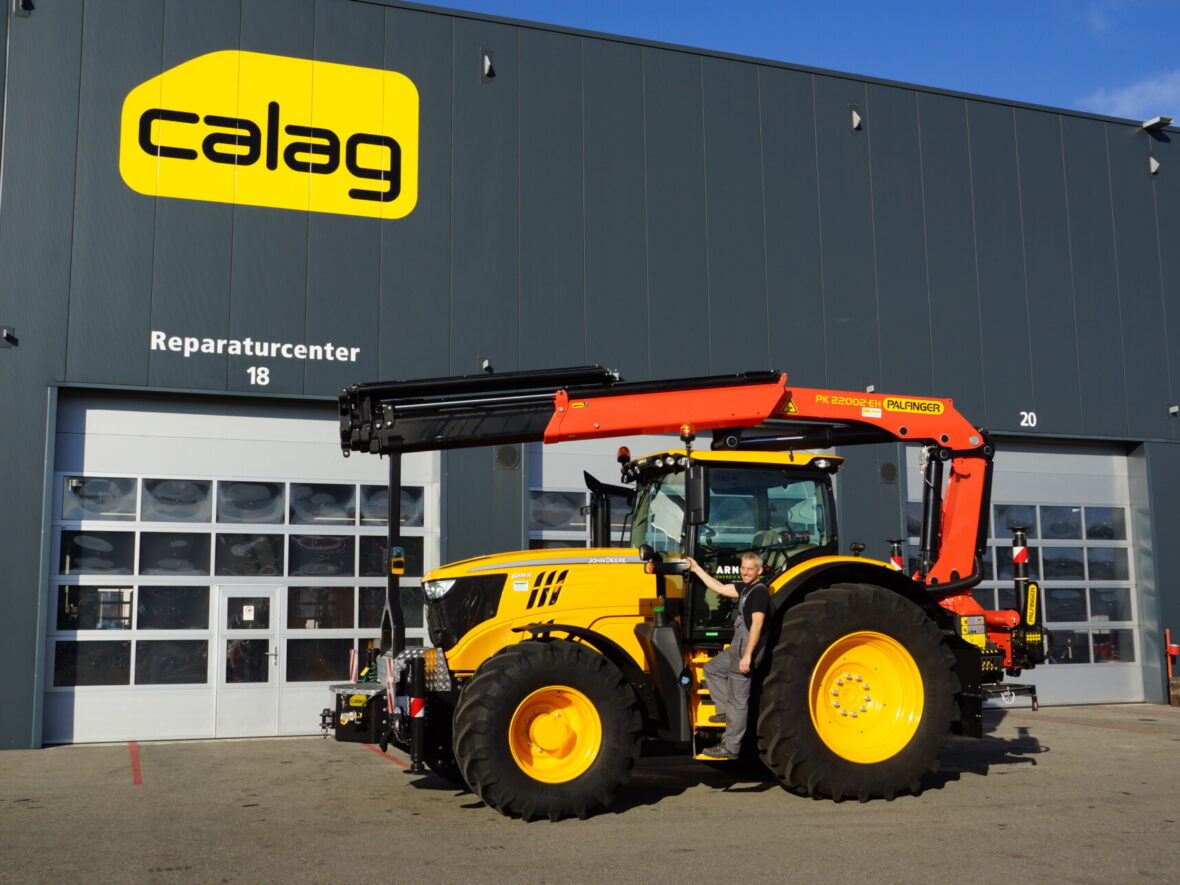 Nicht alltäglich, ein Lastwagenkran auf einen Traktor aufzubauen. Auf Kundenwunsch realisierte die Calag den Spezialaufbau eines Traktors mit 2-facher Abstützung und Stückgutkranaufbau Palfinger PK 220002 EH D
