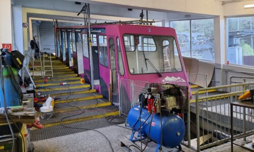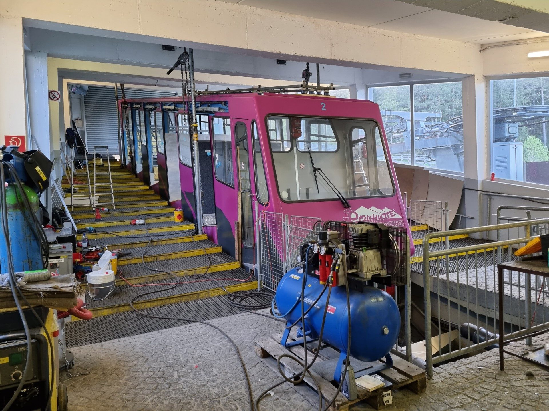 Die Standseilbahn Rosshütte mit Wagen für jeweils 100 + 1 Personen wurde am 20. Dezember 1969 erstmals in Betrieb genommen. Zur Wintersaison 1985/86 wurden die beiden Wagen durch größere für jeweils 124 + 1 Personen aus dem Hause Gangloff ersetzt. Die 2.469 m lange Strecke mit Abt’scher Weiche verläuft von der Talstation (1.235 m Seehöhe) auf einer geschütteten Trasse und sechs Brücken bis zur Bergstation (1.762 m) und überwindet dabei einen Höhenunterschied von 527 m, bei einer mittleren Neigung von 21, 4 % und einer maximalen Neigung von 37, 2 %. Im Winter beträgt die maximale Fahrgeschwindigkeit 12,0 m/s, im Sommer 7,0 m/s, die Fahrtzeit beläuft sich dabei entsprechend auf 5 Minuten bzw. auf 8 Minuten. Somit liegt die maximale Förderleistung im Winter bei 1.200 P/h & Richtung und im Sommer bei 600 P/h & Richtung. Im Hinblick auf die Konzessionsverlängerung 2029 der Standseilbahn Rosshütte wird diese nun im Zuge einer Modernisierung Schritt für Schritt auf den neuesten Stand der Technik gebracht. Dazu Bergbahnvorstand Schneider: „Den Anfang machten wir im August 2023 mit dem Projektstart für die Renovierung des Wagens 2 der Standseilbahn Rosshütte ab Mitte April 2024, Wagen 1 folgt dann 2025. Dabei ging es uns jetzt nicht um das Außendesign des Fahrzeugs, das kommt später und wurde noch nicht vergeben. Unser Fokus lag einerseits auf der optischen Aufwertung des Fahrgastraums und andererseits darauf, das Fahrzeug (Unterbau, Wagenaufbau etc.) auf den aktuellen Stand der Technik zu bringen.“