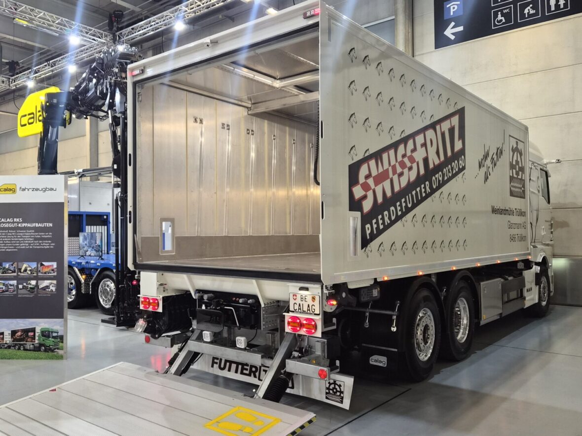 Überzeugt hat das Fahrzeug nicht nur technisch sondern auch optisch. An der Transport CH Messe im November zog der Losegutaufbau als Teil des Calag-Messestands die Aufmerksamkeit vieler Besucher auf sich.
