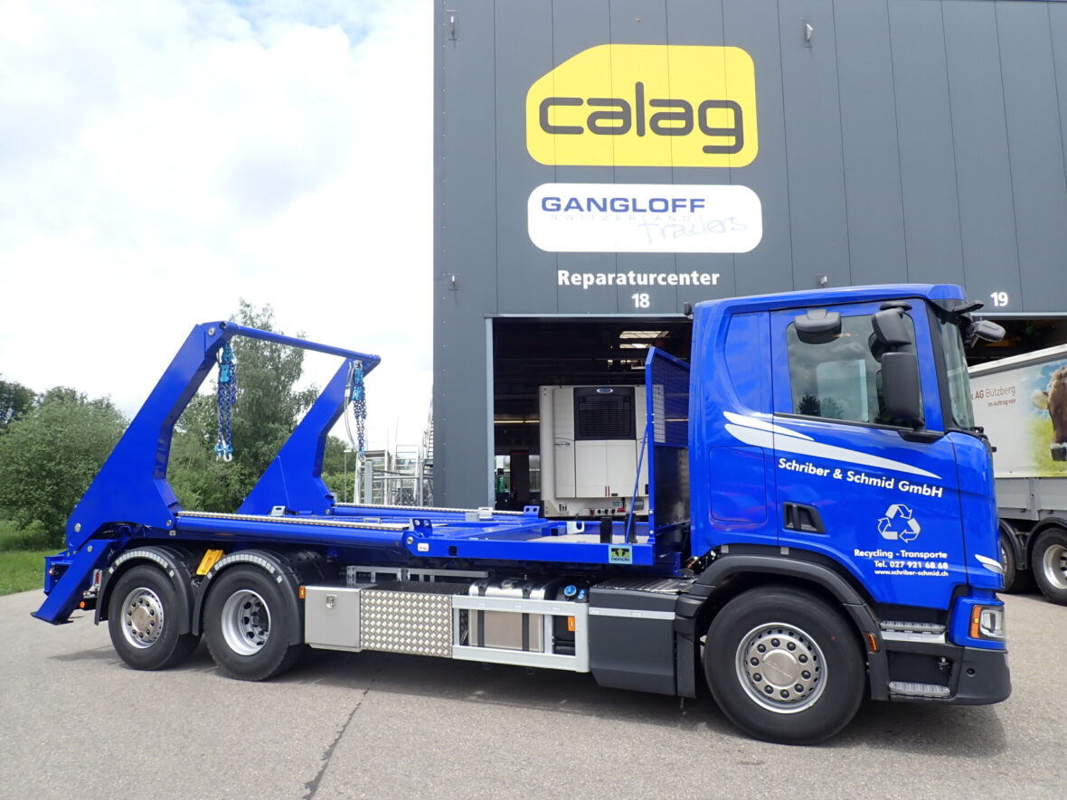 Um im täglichen Einsatz im Recyclinggeschäft möglichst Flexibel zu sein, erweitert die Walliser Schriber und Schmid GmbH ihren Fuhrpark mit einem neuen Fahrzeug. Dank Wechselsystem der Calag wechselt der Scania flexibel den Aufbau von Abrollkipper auf Teleskopabsetzkipper und ist somit für sämtliche Herausforderungen auf dem Recyclinghof und beim Einsammeln der Container und Mulden gewappnet.