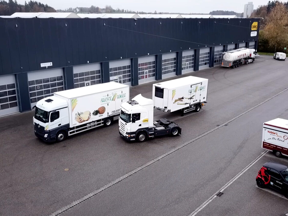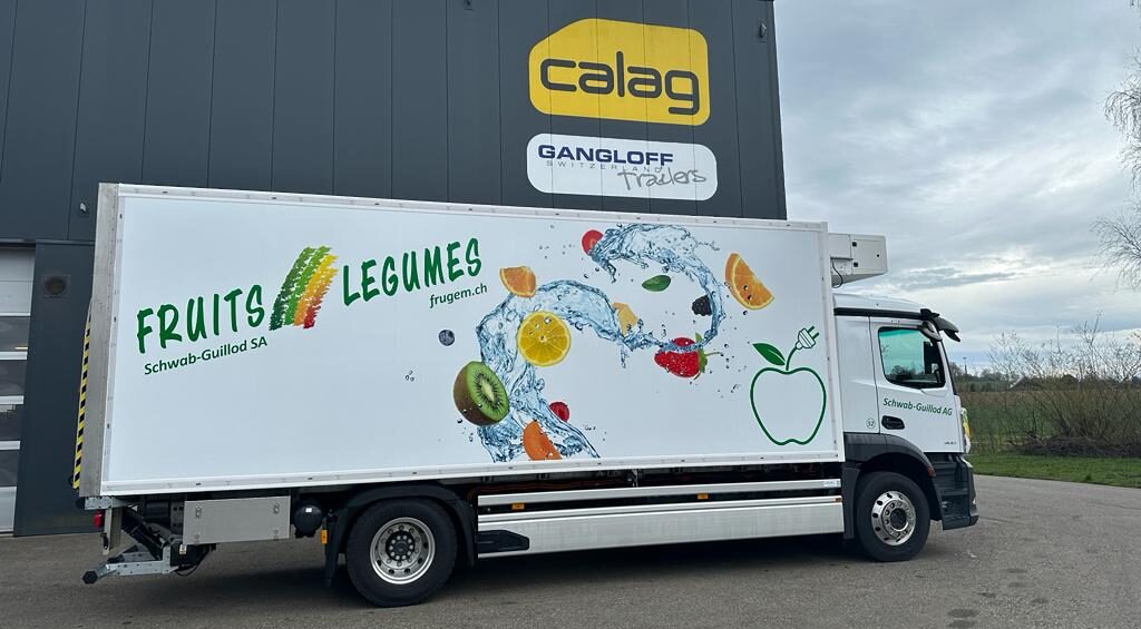Der Seeländer Gemüse und Früchtegroßhändler Schwab-Guillod AG setzt verstärkt auf alternative Antriebsarten in der Fahrzeugflotte zur Belieferung seiner Kunden. Neuste Ergänzung im Fuhrpark ist ein Mercedes eActros, mit einem SOR Kühlkofferaufbau aus dem Hause Calag.
