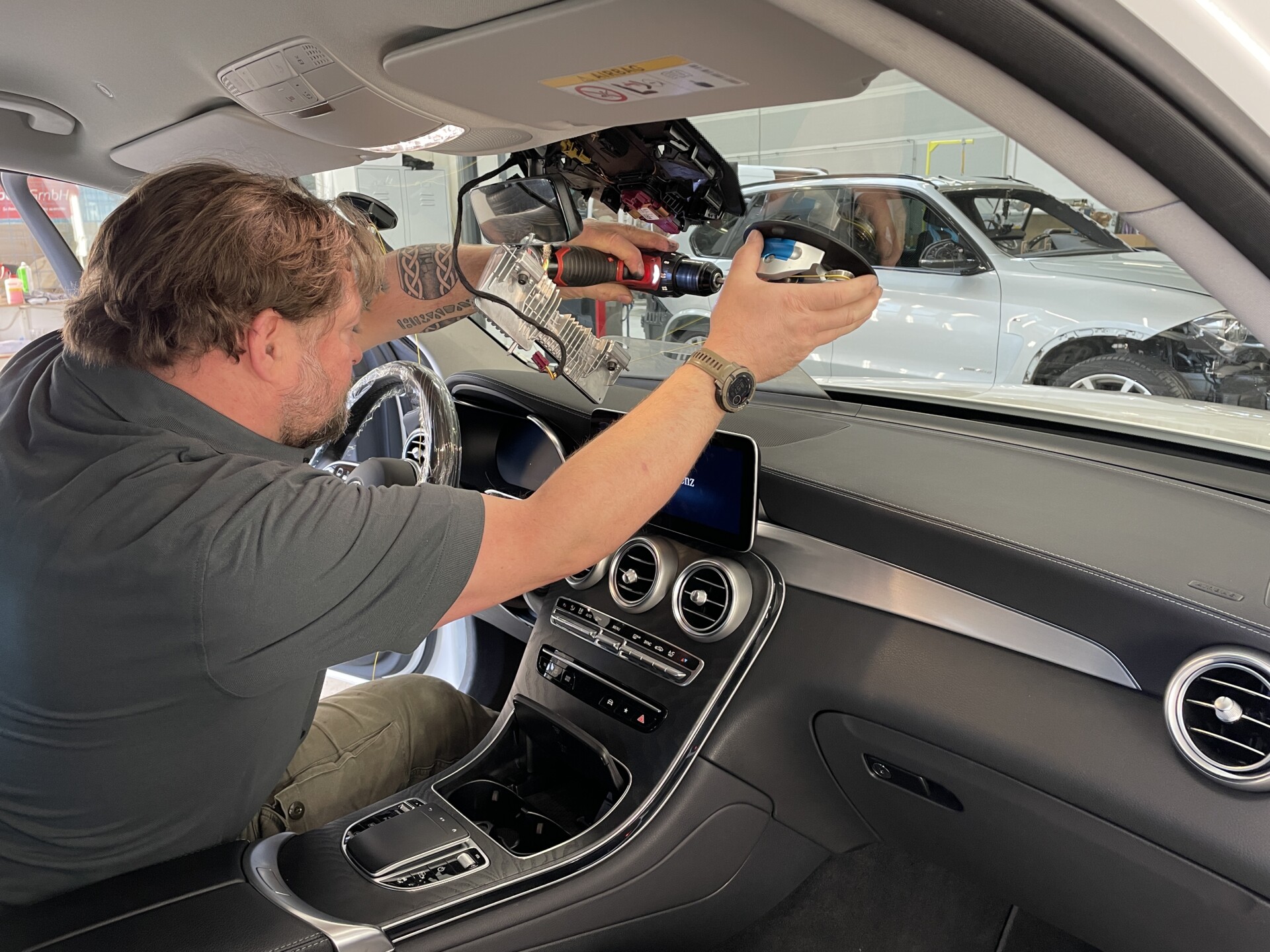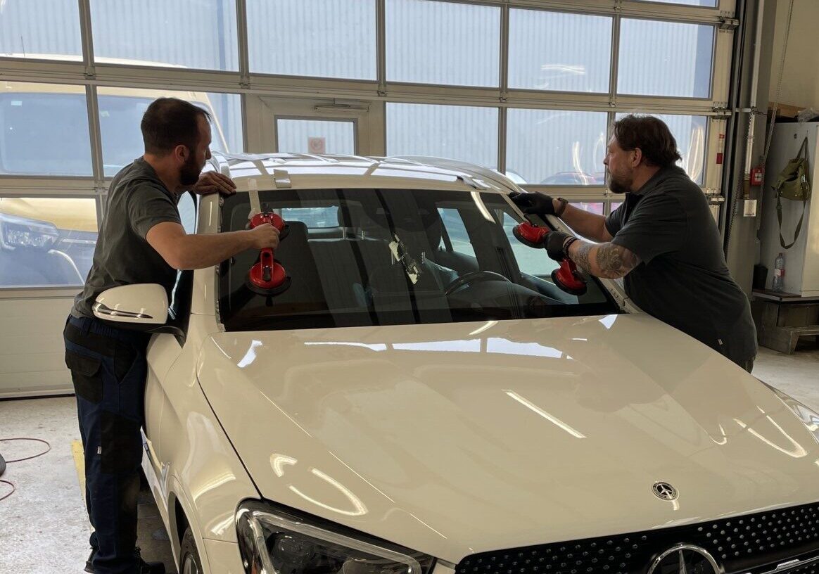 Bei den heutigen modernen Fahrzeugen ist die Frontscheibe ein kraftschlüssiges mit der Carrosserie verklebtes Bauteil, welches zur Verbesserung der Torsionsfestigkeit (Stabilität) dient. Zudem verfügen die meisten über viele Sensoren wie Radar, Abstandshalter, Regensensoren oder Head-Up Displays, welche den Fahrer unterstützen. Genau aus diesen Gründen sollten Scheibenreparaturen oder -ersatz nur in einem Fachbetrieb ausgeführt werden, welcher über eine entsprechende Infrastruktur verfügt. Unsere ausgebildeten Fachkräfte sorgen für eine sorgfältig ausgeführte Arbeit nach Herstellervorschriften – egal welcher Marke.