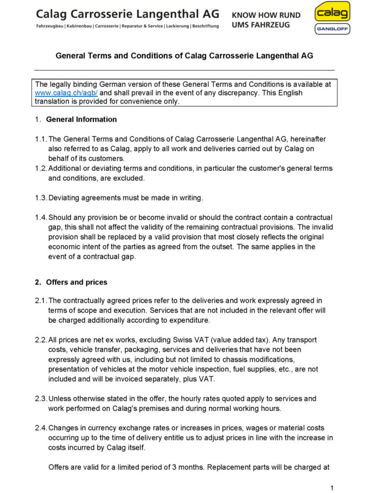 Calag Carrosserie Langenthal AG - General Terms and Conditions