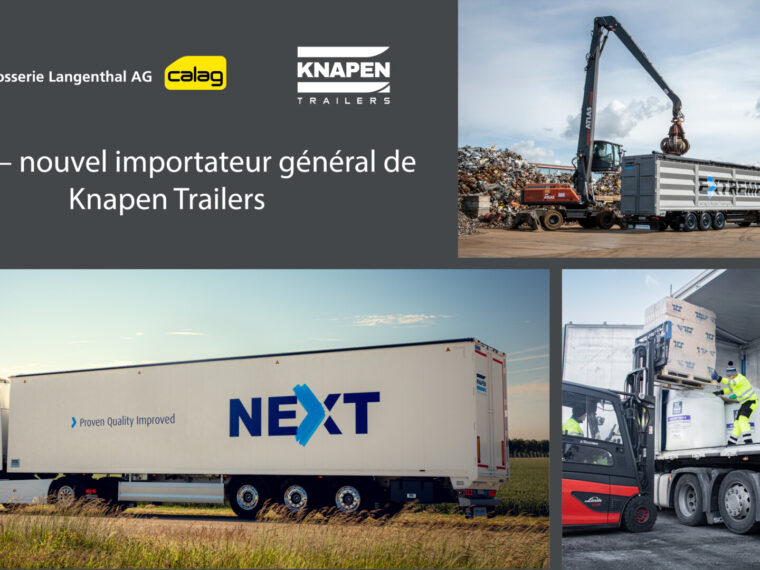 En tant qu’importateur général suisse des semi-remorques à fond mouvant de Knapen Trailers, nous proposons la gamme complète de Knapen. De plus, à Langenthal, nous pouvons répondre à vos demandes individuelles telles que la peinture, le marquage, l’espace de rangement, les caméras de recul, les ventilateurs, les sas et bien plus encore. En tant que centre de service après-vente, vous pouvez bénéficier de notre partenariat de service personnalisé et rapide grâce à des travaux de réparation et d’entretien professionnels ainsi qu’à un service de pièces de rechange. Cela réduit vos temps d’immobilisation et vous permet de vous concentrer à nouveau sur l’essentiel : votre mobilité.